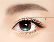 Высота линии двойного века определяется на том уровне, где второе веко будет естественно накрывать линию двойного века. В случае если верхнее веко очень тонкое и не хватает нужного объема для создания второго века, добавляются собственные жировые клетки.
