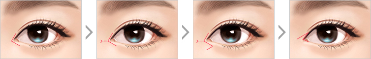 Самой распространенной проблемой после операции является то, что внутренний и внешний уголок глаз может приобрести квадратную форму ≪ㄷ≫. Z- образный метод операции позволяет предотвратить появления квадратной формы, тем самым создать красивую и естественную форму глаз.