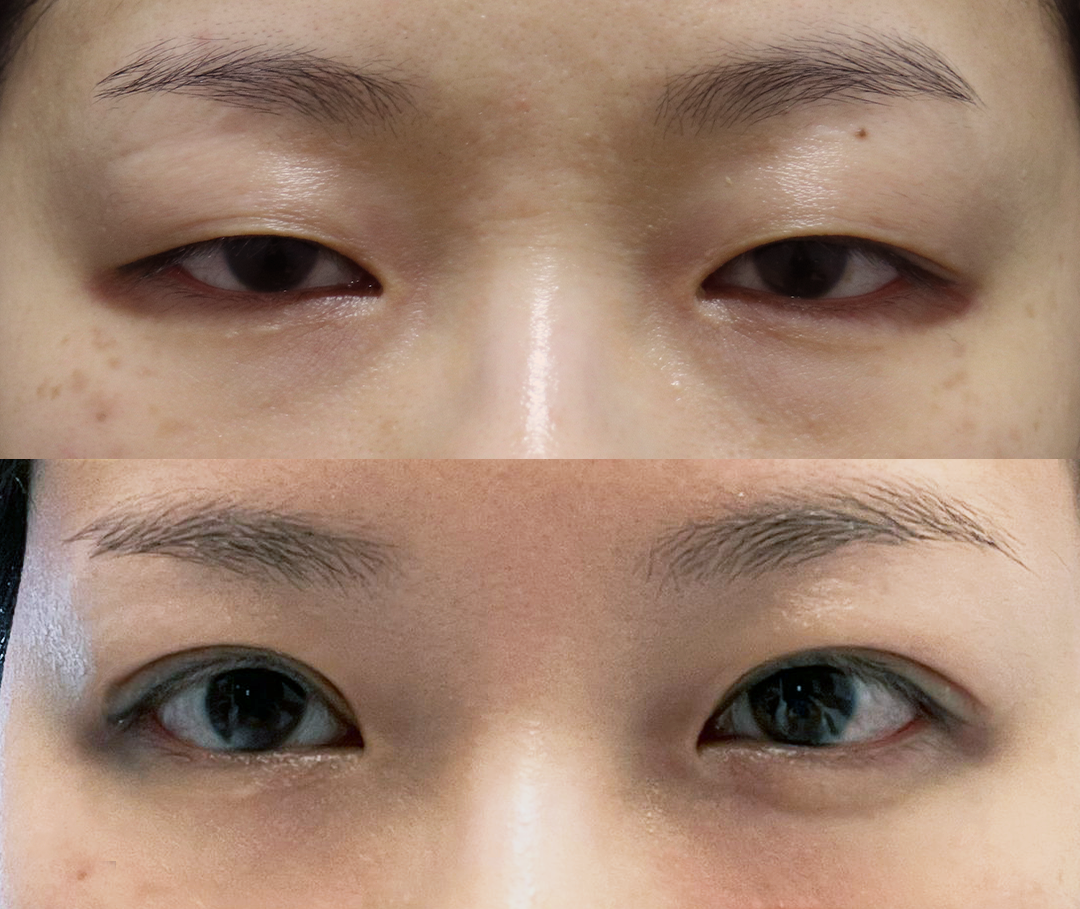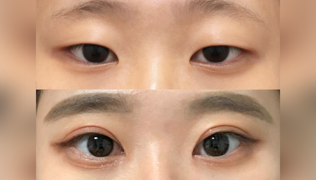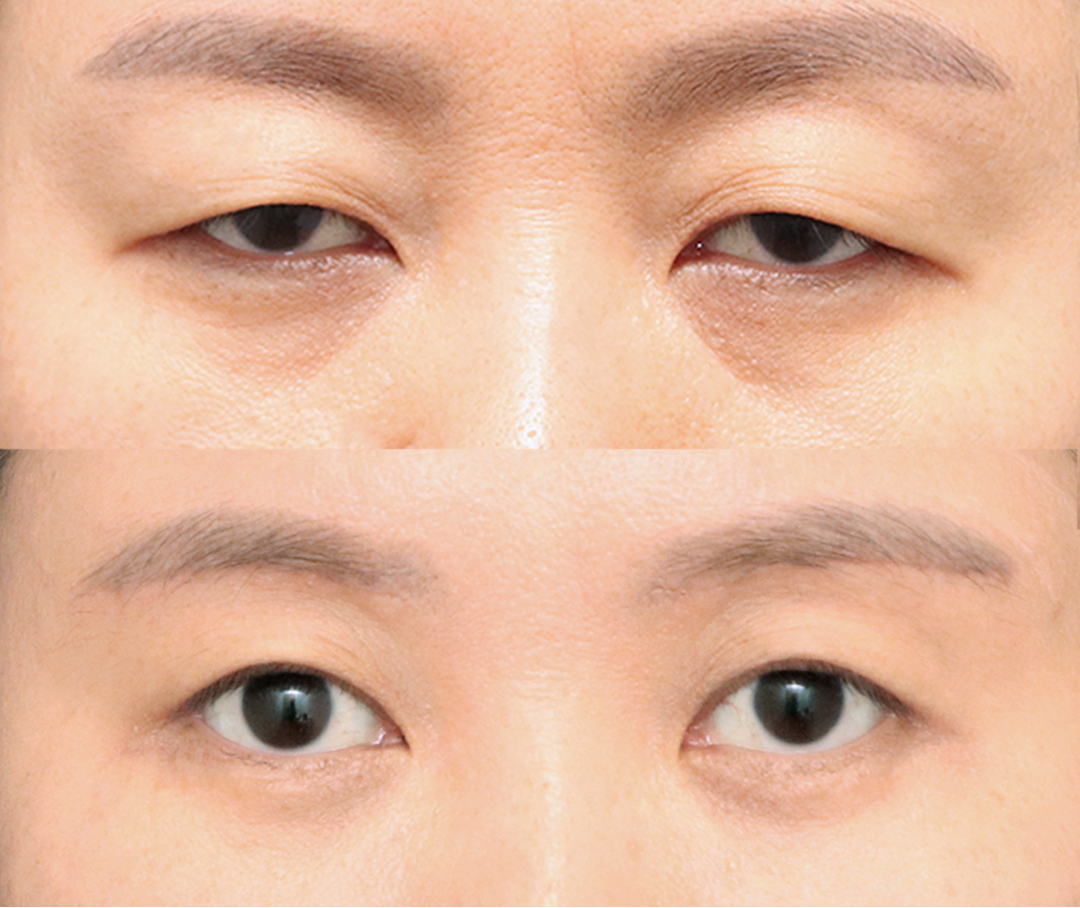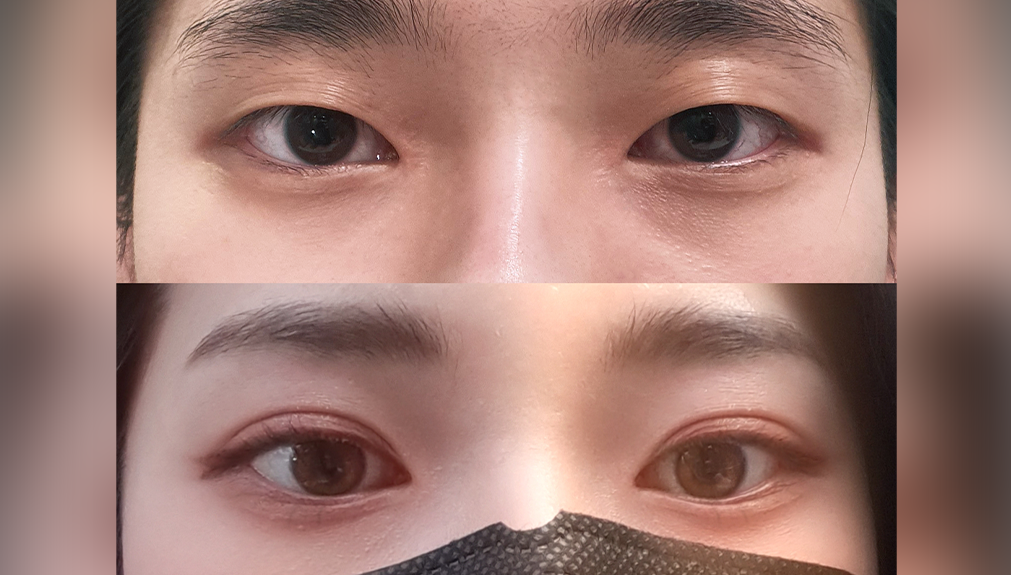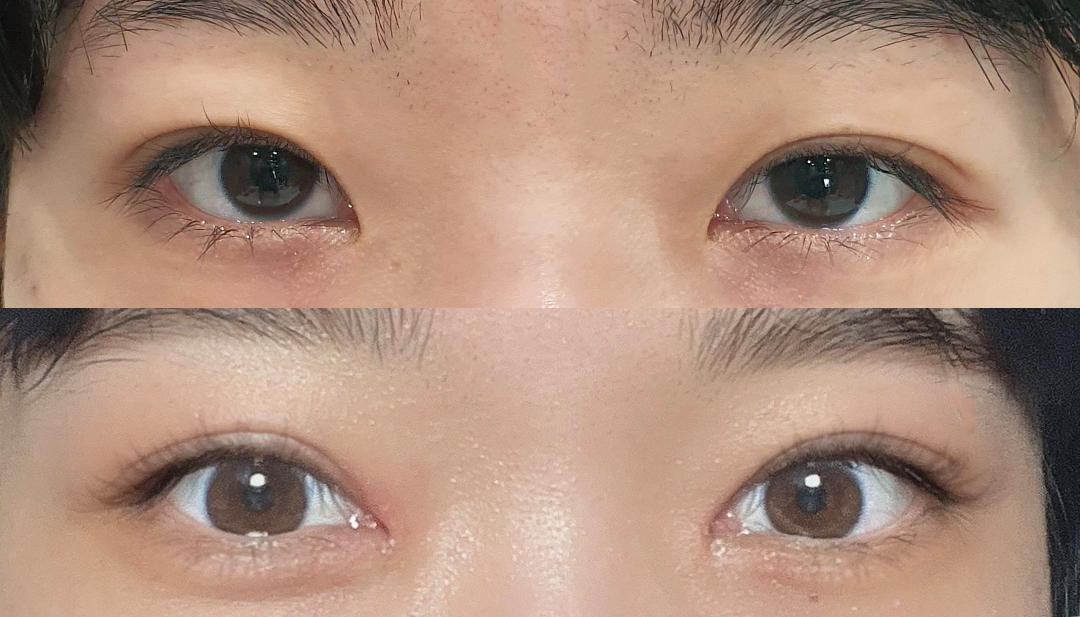 Before after pictures of eye surgery at JW Beauty Clinic in Seoul, South Korea.