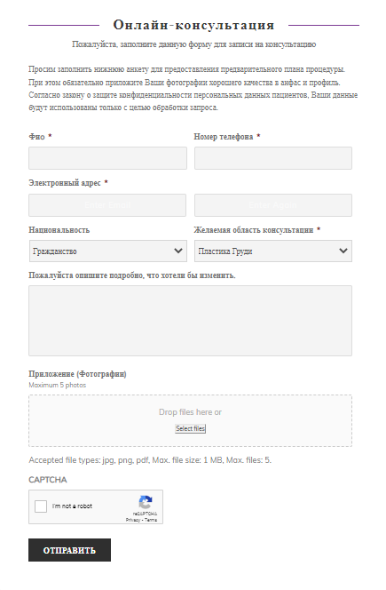 Во время консультации вас попросят предоставить ваши личные данные, историю операций (в том числе непластических операций) и фотографий.