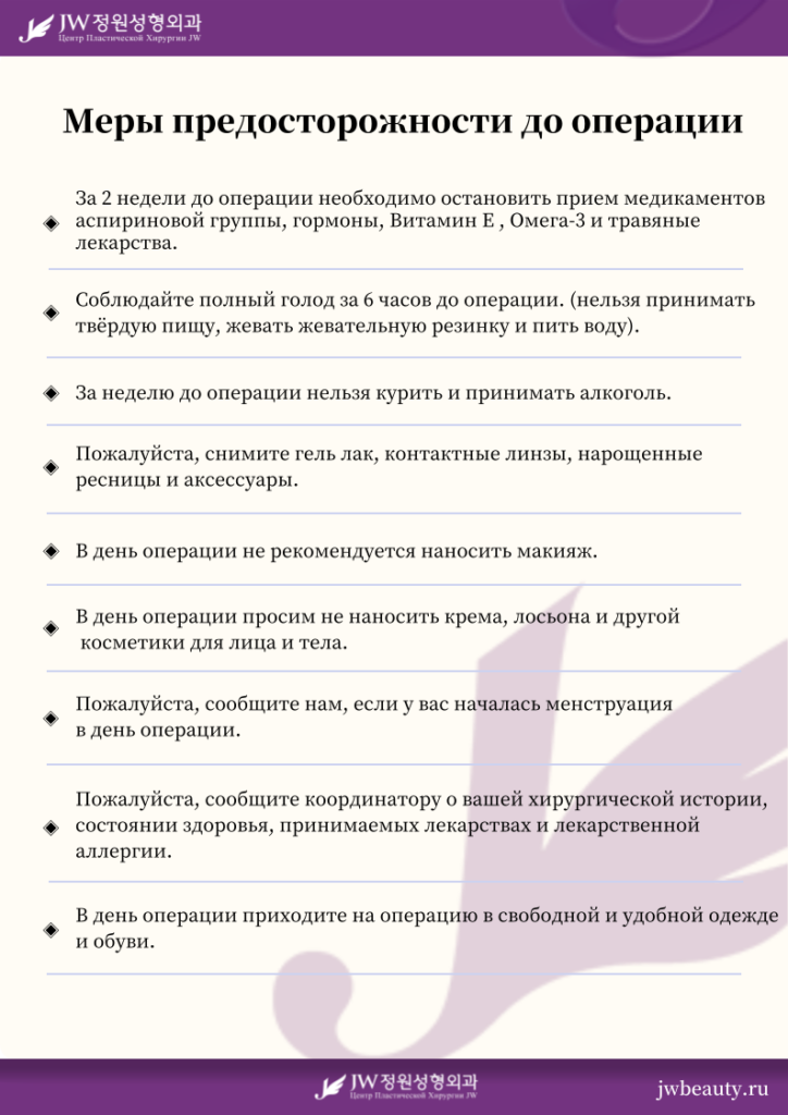 Здесь вы найдете полный список мер предосторожности при хирургическом вмешательстве: