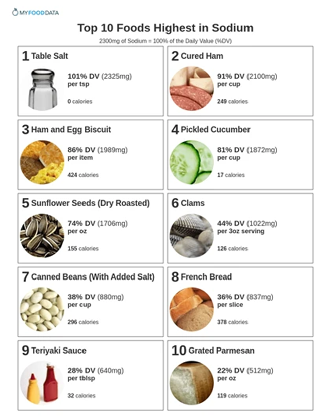 Продукты, вызывающие отеки (ссылка: myfooddata.com)