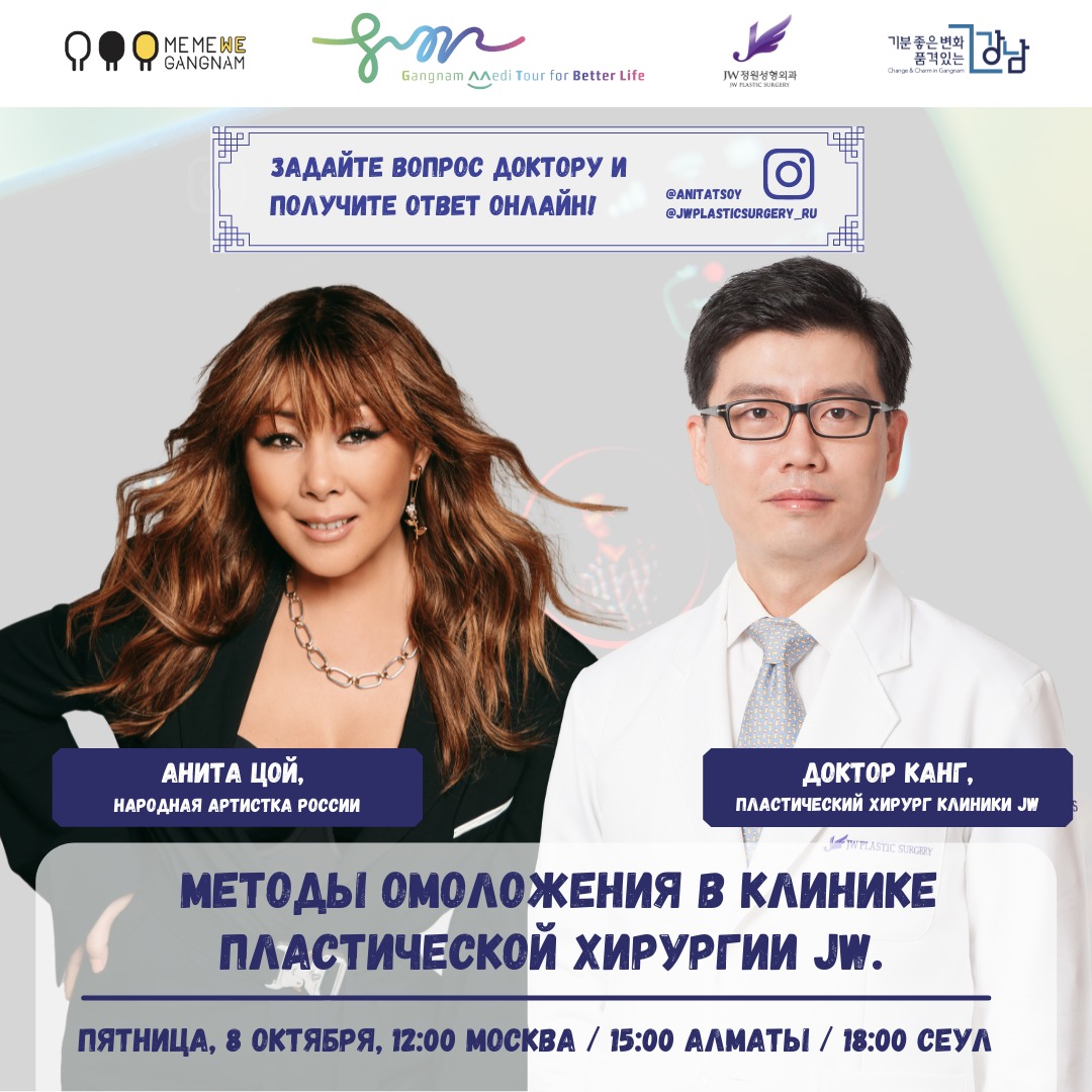 Прямой эфир вели известная российская певица Анита Цой и доктор Канг, специализирующийся на антивозрастной хирургии в Центре Пластической Хирургии JW.