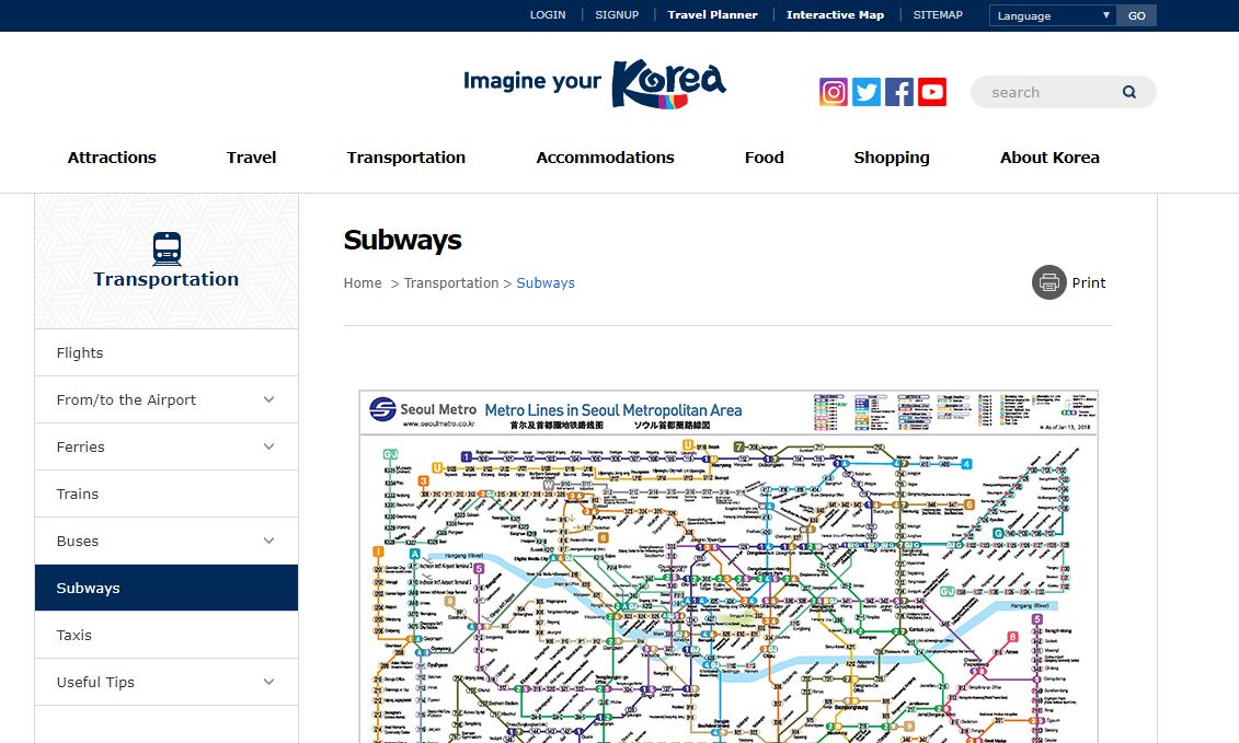 - If you would like to use public transportation, please check out the Korean Tourism Organization website which explaines how to use all types of public transportation in Korea.