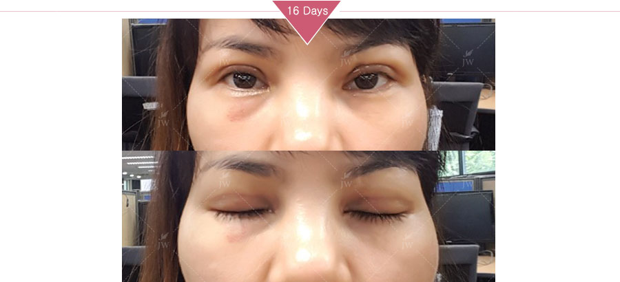 The scars were already fading 16 days after the surgery. The shape of my eyes was still not very natural because of the swelling but my eyes look much brighter for sure.