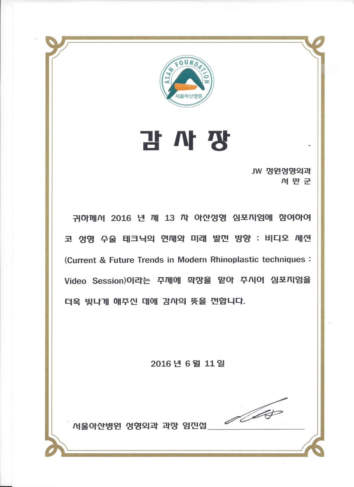 One of the Best rhinoplasty specialist surgeon Man Koon Suh got invited to “Current & Future Trends in Craniomaxillofacial Reconstructive & Aesthetic Surgery” at Asan Hospital on June 10th, 2016