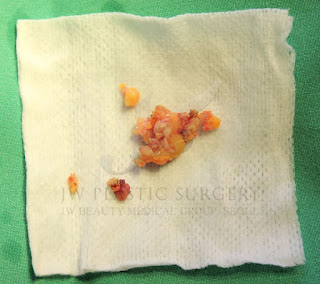 So Dr. Hong Dae Kang performed Lower eyelid mass excision and Lower Blepharoplasty at the same time. On the left part of lower eyelid seemed to have large lipogranuloma on the orbital fat, oom.