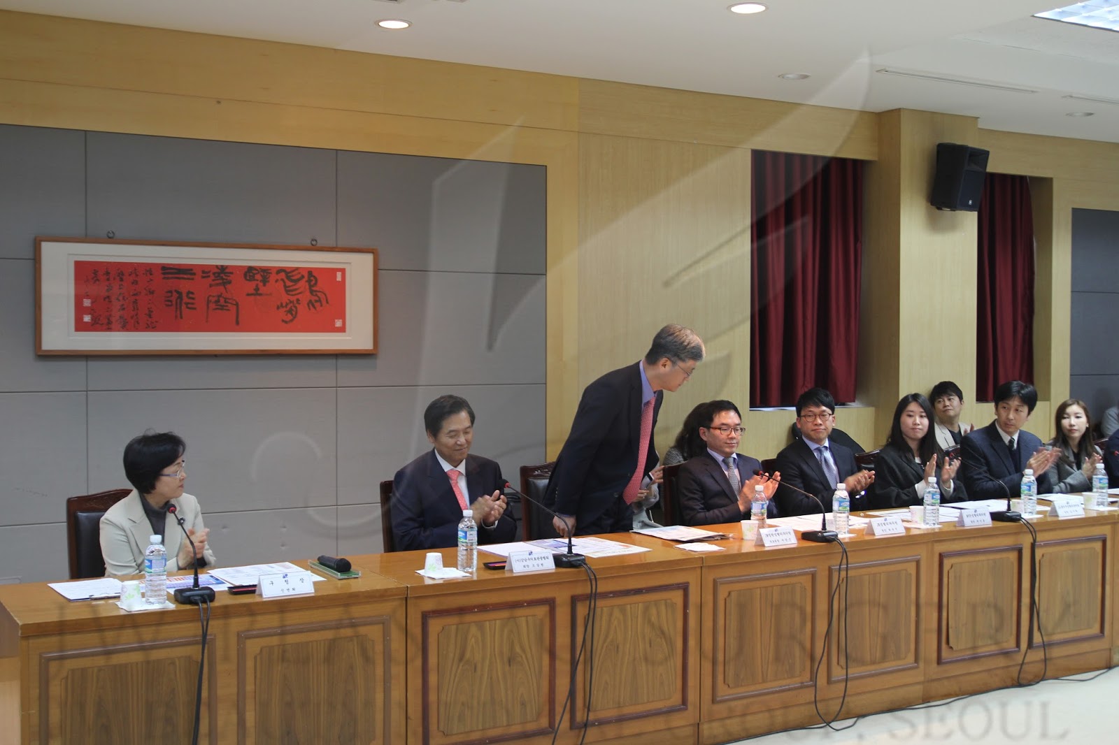 All the president and representative of institution and clinics are greeting Dr. Suh