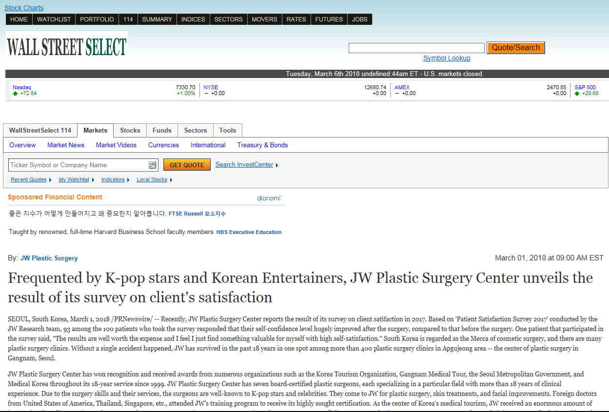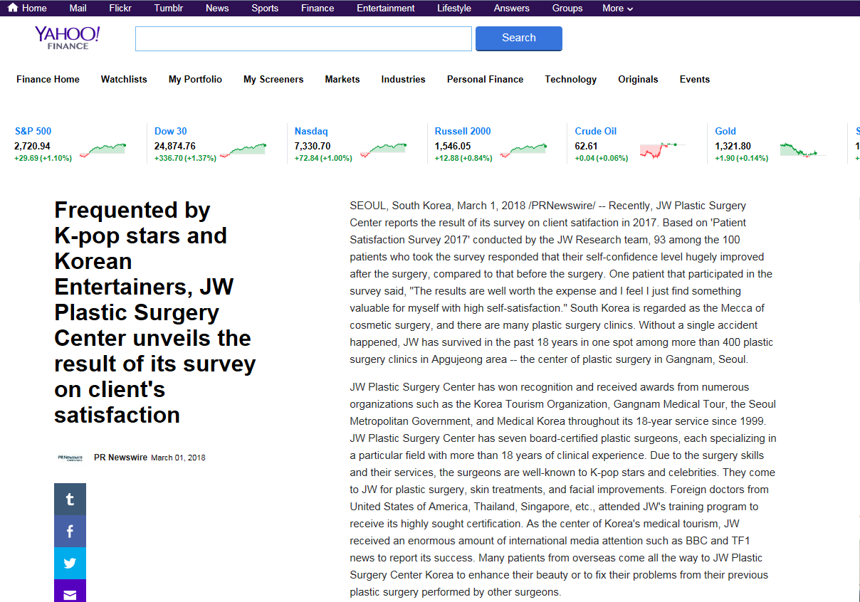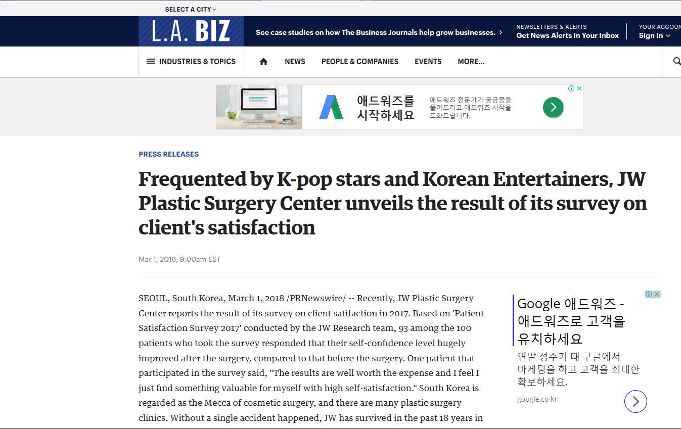 Recently, JW Plastic Surgery Center reports the result of its survey on client satifaction in 2017. Based on ‘Patient Satisfaction Survey 2017’ conducted by the JW Research team, 93 among the 100 patients who took the survey responded that their self-confidence level hugely improved after the surgery, compared to that before the surgery. One patient that participated in the survey said, “The results are well worth the expense and I feel I just find something valuable for myself with high self-satisfaction.” South Korea is regarded as the Mecca of cosmetic surgery, and there are many plastic surgery clinics. Without a single accident happened, JW has survived in the past 18 years in one spot among more than 400 plastic surgery clinics in Apgujeong area — the center of plastic surgery in Gangnam, Seoul.