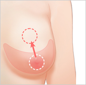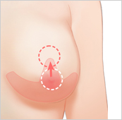 Возможно подтянуть грудь обычным методом увеличения груди. Если обычного метода операции по увеличению груди не достаточно, делается надрез большой грудной мышцы и имплант вводится между мышцами. Использование каплевидных имплантов в таких случаях позволяет достичь еще более хорошего результата.