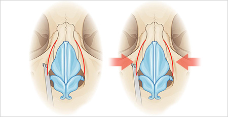 Самой большой проблемой широкого носа является то, что из за широкой спинки носа лицо выглядит большим и тучным, даже если при этом спинка носа высокая. Ринопластика широкого носа – это операция во время которой сокращают (спиливают) косточки по бокам в вертикальном направлении. После чего подтягивают их друг к другу и закрепляют.
