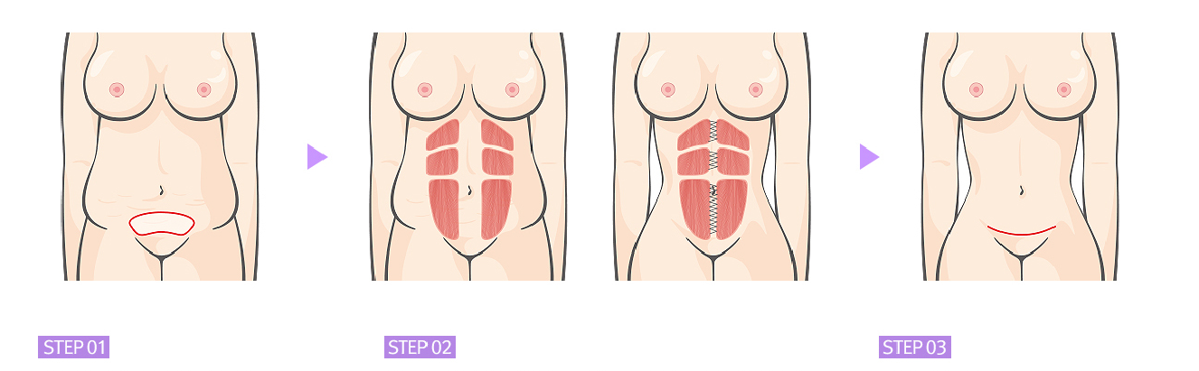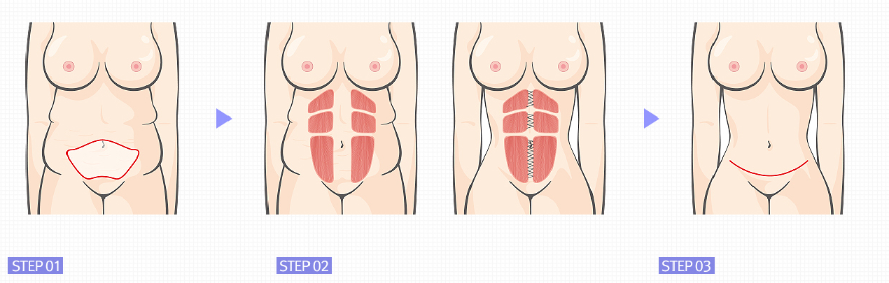 При помощи инцизии в области под пупком, подтягивается и удаляется лишняя кожа живота. Мини абдоминопластики идеально подходит для людей с дряблой кожей и выпячивающим животиком ниже пупка. Обычно мини абдоминопластика не может собрать растянувшиеся мышцы живота после беременности.