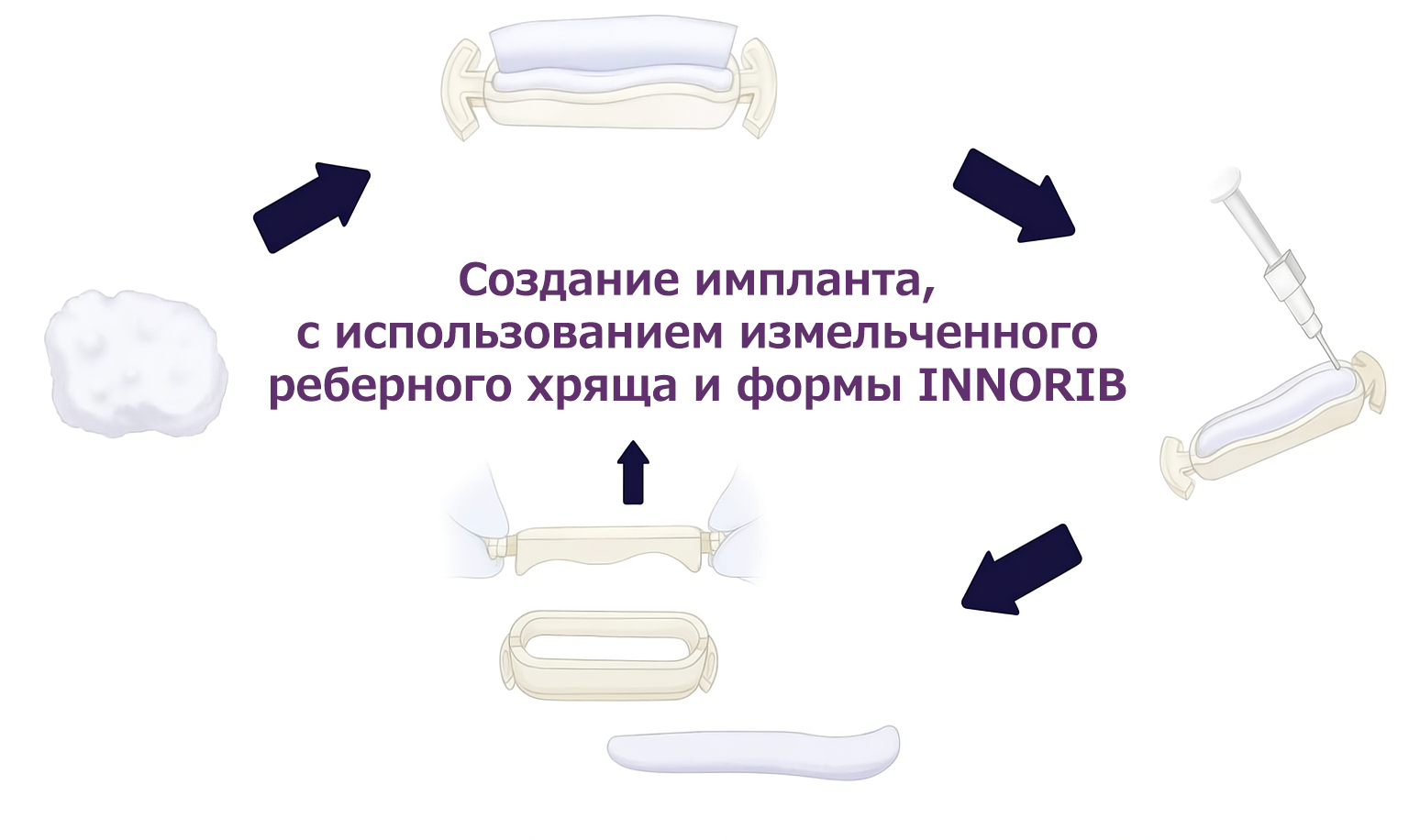 Процесс создания импланта, с использованием измельченного реберного хряща и формы INNORIB