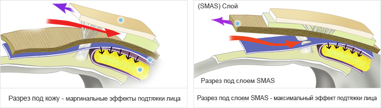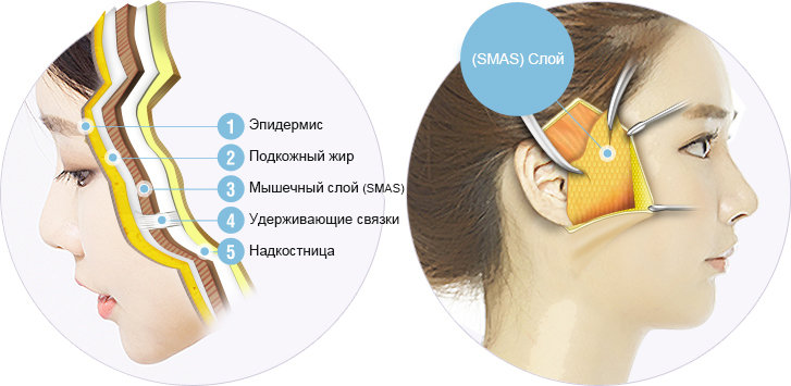 Кожа лица состоит из жирового слоя и нескольких слоев мягких тканей. Жировой слой лица помогает сохранить молодость внешнего вида лица. Поэтому с возрастом когда жировой слой начинает провисать, возможно сохранить молодость и уменьшить количество морщин при помощи его подтягивания. Но для достижения оптимального эффекта, каждые из мягких тканей должны быть подтянуты в соответственном направлении.