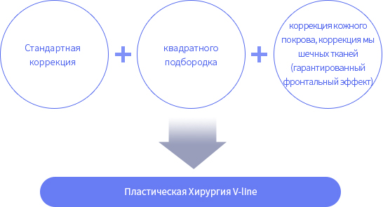 результат | изящный красивый контур лица как при виде спереди, так и при виде сбоку | овальный контур при виде сбоку |