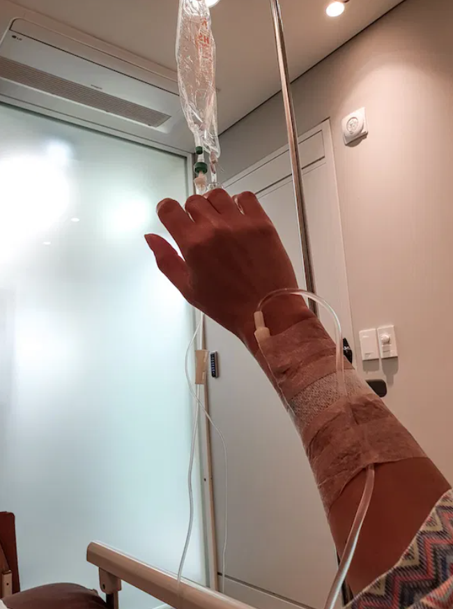 Четыре часа спустя я просыпаюсь … сейчас немного расплывчато, но я помню, как вернулась в свою личную палату и именно тогда я поняла, что операционная была прямо по соседству. Медсестры могли прийти в мою палату за 5 секунд, если они мне понадобились, с помощью кнопки вызова, которую я использовала, когда заметила, что в какой-то момент в моей капельнице был очень низкий уровень жидкости, и они НЕМЕДЛЕННО заменили ее новым пакетом . Иногда анестезиологи считают, что пациенту может потребоваться внутривенное обезболивающее в зависимости от уровня боли после операции. Обычно его назначают пациентам с более сложным планом операции или если уровень боли может быть сильным после операции … В основном, вы можете получить или не получить внутривенное обезболивающее … Мне, очевидно, сделали.